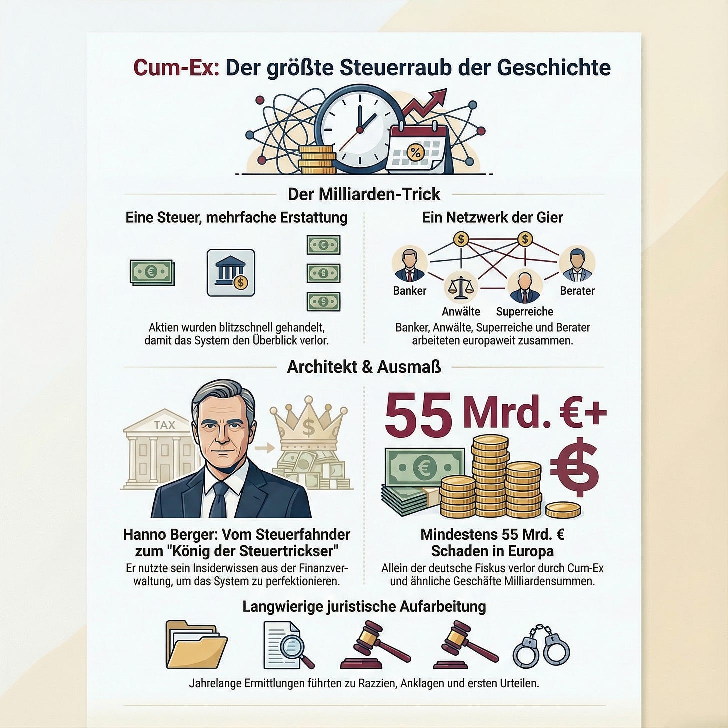 Der größte Steuerraub der deutschen Nachkriegsgeschichte ist bei weitem noch nicht aufgearbeitet. Nur “kleine” Fische wurden hier bisher Dingfest gemacht und wesentliche Akteure machen weiter. In diesem Podcast werden grundlegende Probleme unserer behördlichen Struktur angesprochen, die eine Aufklärung erschweren.